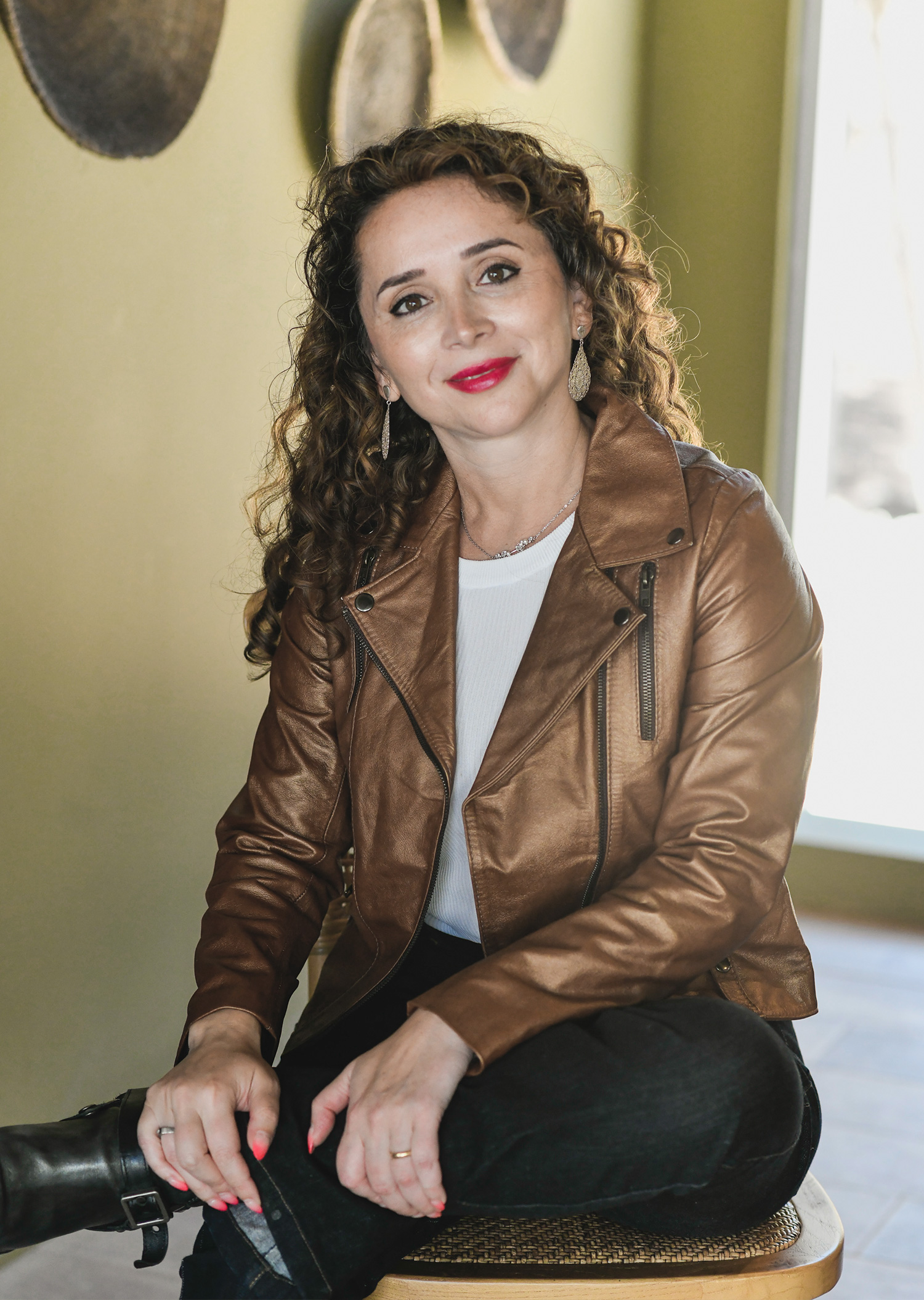 La chaqueta de cuero cobre mujer entallada Marcela simboliza calidez y fortaleza al mismo tiempo: la fuerza que has construido con los años y la luz que hoy te permites mostrar.